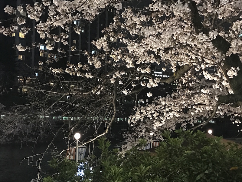 写真は夜ランのときの皇居周辺の夜桜。