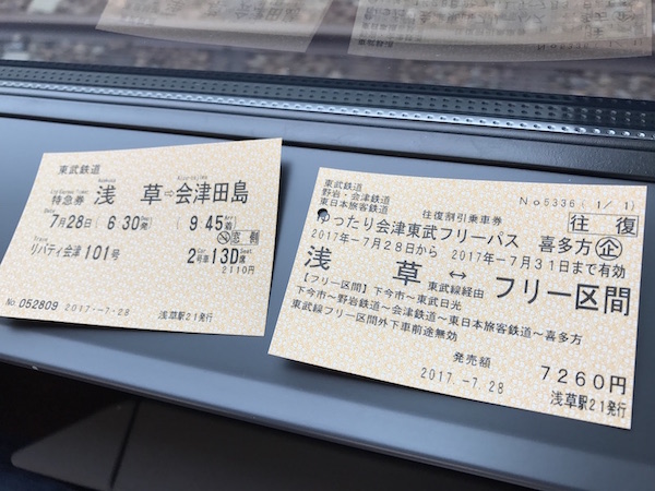 ということで朝4時半におきて出発の準備。なんせ浅草6時半発のリバティ会津101号に乗るのだ。水出しのお茶を水筒にいれて余裕をみて浅草駅へ。切符は「会津東武フリーパス喜多方」。往復で2,000円くらい安くなります。