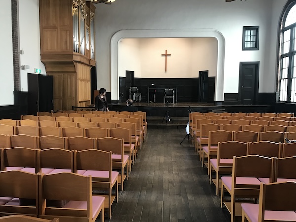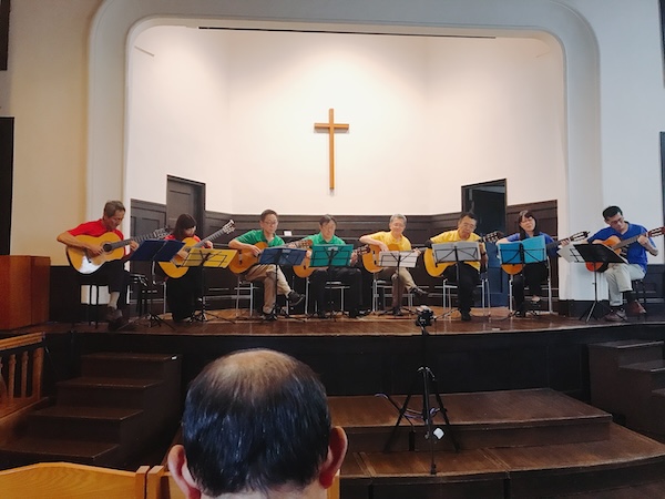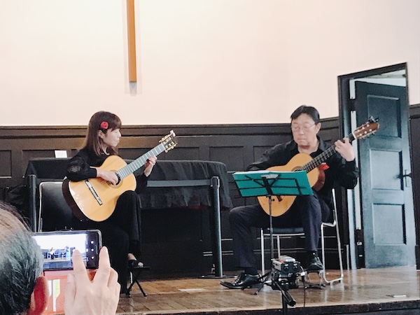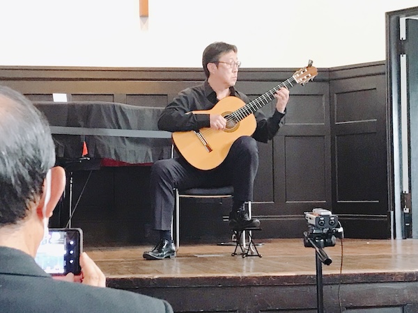 こちらホールの内部。ホールの利用条約の関係で今回は打楽器が使用できないので、ギターオンリーの演奏となるそうです。