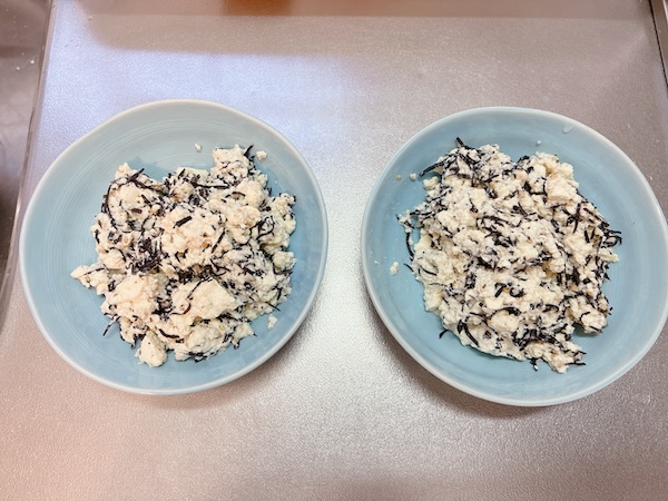 他にもいくつか箸休めを。こちらは昨年秋にも出した、ひじきの白あえ。木綿豆腐に会えるだけのひじきを母からもらったので、活用しました(^^)
