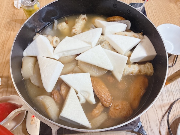 おでんはいつも1回では食べきらず、だいたい翌日に持ち越してハウスメイトが2日目のおでんを楽しみます(^^)